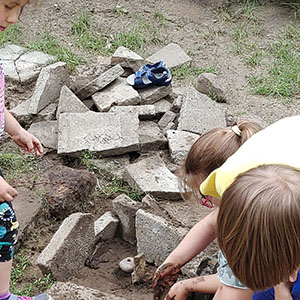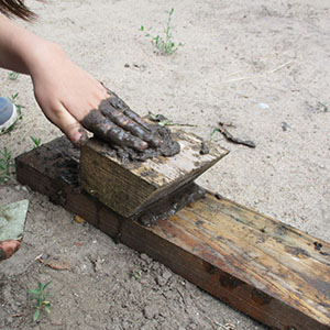 Cegły, kamienie, oheblowane deski, gałęzie, patyki, sznurki.
